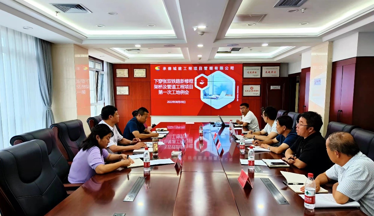 2022年8月9日上午,承德市國瑞置業(yè)有限公司在國控大廈十二層第一會議室組織召開下穿張雙鐵路新修框架橋及管道工程項目第一次例會。市國控集團總經(jīng)理徐俊儒、國瑞置業(yè)公司董事長胡杰出席會議。